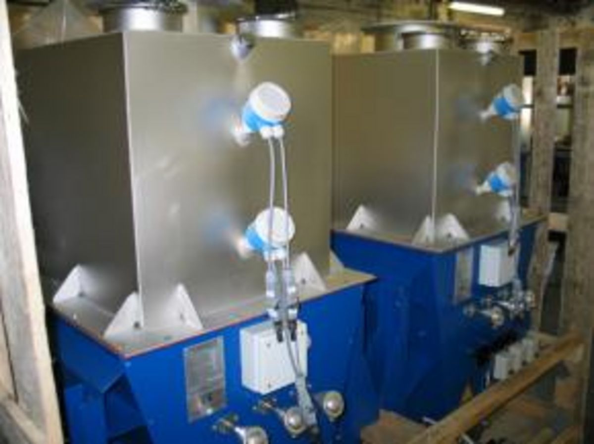 Als Beispiel einer kombinierten Anlage zur Vorprodukt-Aufschmelzung, zur Rohstoffpufferung und als Dosiervorlage präsentiert die Will & Hahnenstein GmbH eine neue Aufschmelzkammer für 10.000 Liter Lebensmittelfett. Konstruktion und Ausführung profitieren von dem umfangreichen Erfahrungsschatz aus über 85 Jahren thermischer Apparatebau. Die 10 würfelförmigen Fettblöcke mit einem allseitigen Kantenmaß von ca. 1 m werden in zwei Reihen hintereinander auf Kufen gelagert. Die Beschickung erfolgt durch nur einen Bediener, der zudem seinen Gabelstapler nicht verlassen muss, da die Rolltore an der Beladungsöffnung ferngesteuert und alle Lagerpositionen von oben einsehbar sind. Nach dem Schließen der Tore beginnt die Aufheizphase mit erhitzter Umluft. Die durch zwei Hochleistungsventilatoren turbulent zirkulierende Luft erwärmt sich höchst effektiv an einem groß dimensionierten Spiralrohr-Wärmetauscher auf ca. 80 °C. Als Heizmedium dient Heißwasser. Nach Erreichen der Solltemperatur beginnen die Fettblöcke zu schmelzen und tropfen in die ca. 10.000 Liter fassende Auffang- und Bevorratungswanne ab. Zur weiteren Beschleunigung des Prozesses wird ein Teil der flüssigen Schmelze nun durch eine Pumpe zurückgeführt und über ein 10 köpfiges Brausesystem von oben auf die angeschmolzenen Blöcke getropft. Durch diesen Verfahrensschritt wird die Aufschmelzzeit erheblich verkürzt. Der vollständig in Edelstahl ausgeführte Innenraum der Anlage erfordert eine ausgeklügelte Gestaltung mit gut abtropfenden Leitblechen, einer rückseitigen Membran-Abdichtung der Edelstahl-Rolltore sowie einer vollständigen Einleitung aller Fetttropfen in die Wanne. Zur weiteren Temperierung der flüssigen Schmelze ist die Wanne mit Glattrohr-Wärmetauschern für Warmwasser ausgerüstet, deren Wärmeabgabe und Effektivität aufgrund der ständigen Strömung des Fettes in der Wanne, hervorgerufen durch das Umpumpen der Schmelze, wesentlich verbessert wird. Bei Anforderung durch den nachgeschalteten Produktionsreaktor pumpt die kombinierte Umwälz- und Förderpumpe die Schmelze über einen integrierten Grobfilter aus der Wanne ab. Eine vollautomatische Steuerung für die verschiedenen Heizkreise, die Umluftgebläse sowie die Füllstandsüberwachung der Produktwanne mit Meldungen an das externe Prozess-Überwachungssystem runden die Gesamtanlage ab.