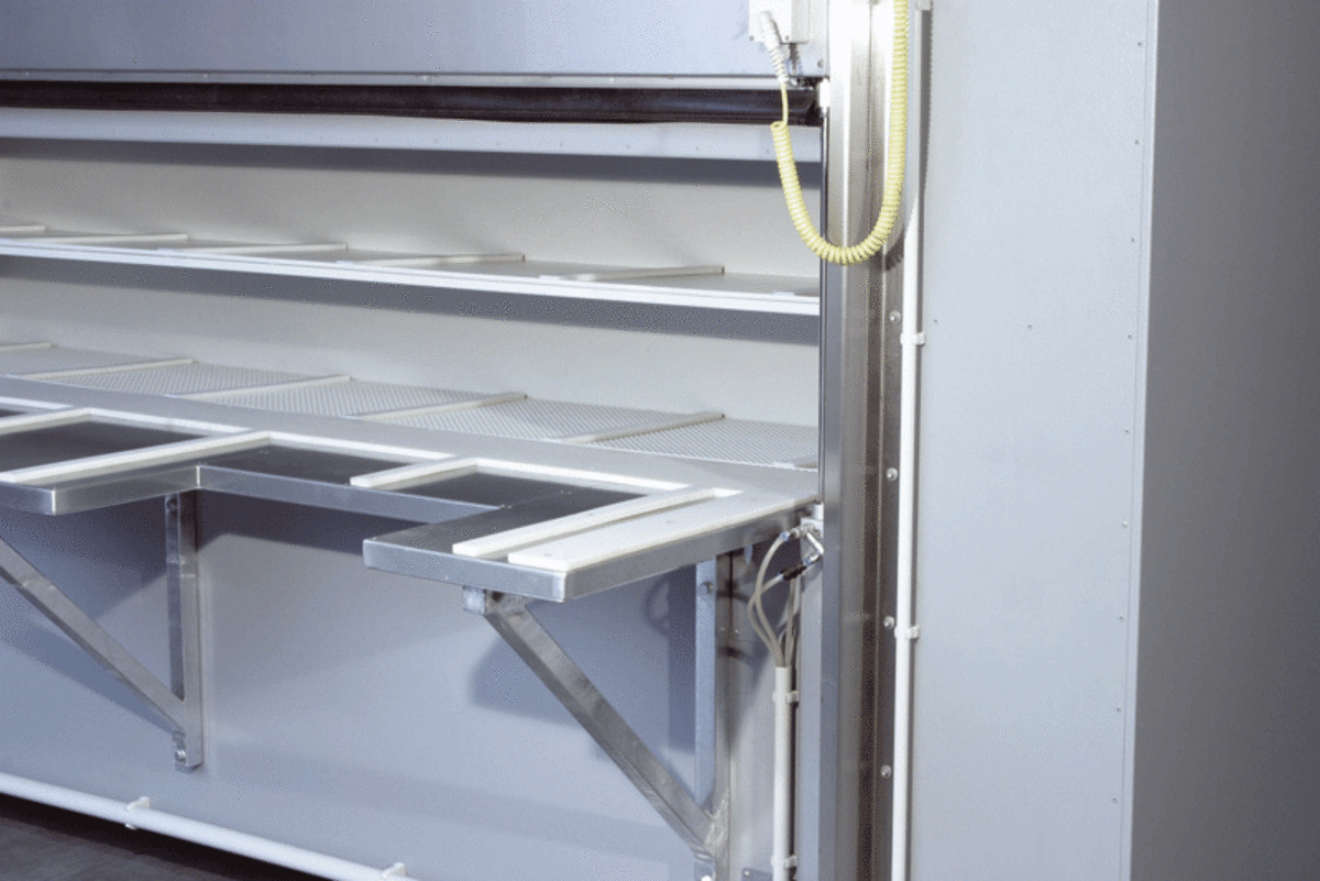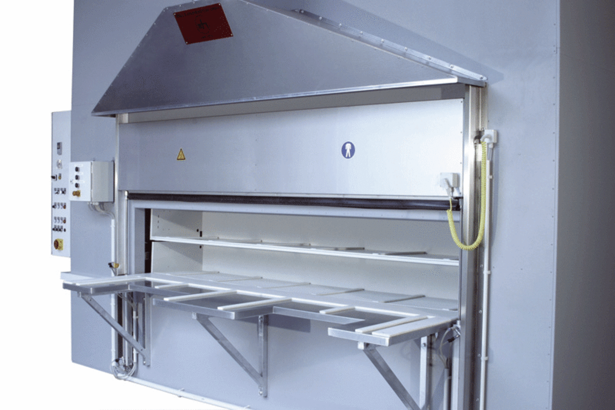 Hierbei führt der Regalumlauf zusammen mit der horizontalen Querdurchlüftung zu einer besonders gleichmäßigen Temperaturverteilung im Innenraum, die die gleich bleibende Qualität der Bauteile und Klebungen sicherstellt.