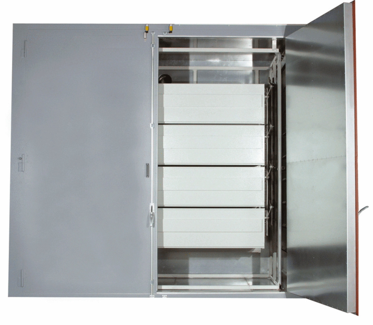Dieser Temperofen zur speziellen Wärmebehandlung von Kunststoffbauteilen verfügt über eine sehr hohe Umluft- und Frischluftleistung für eine sehr gleichmäßige Temperaturverteilung und horizontal gerichtete Luftströmung.