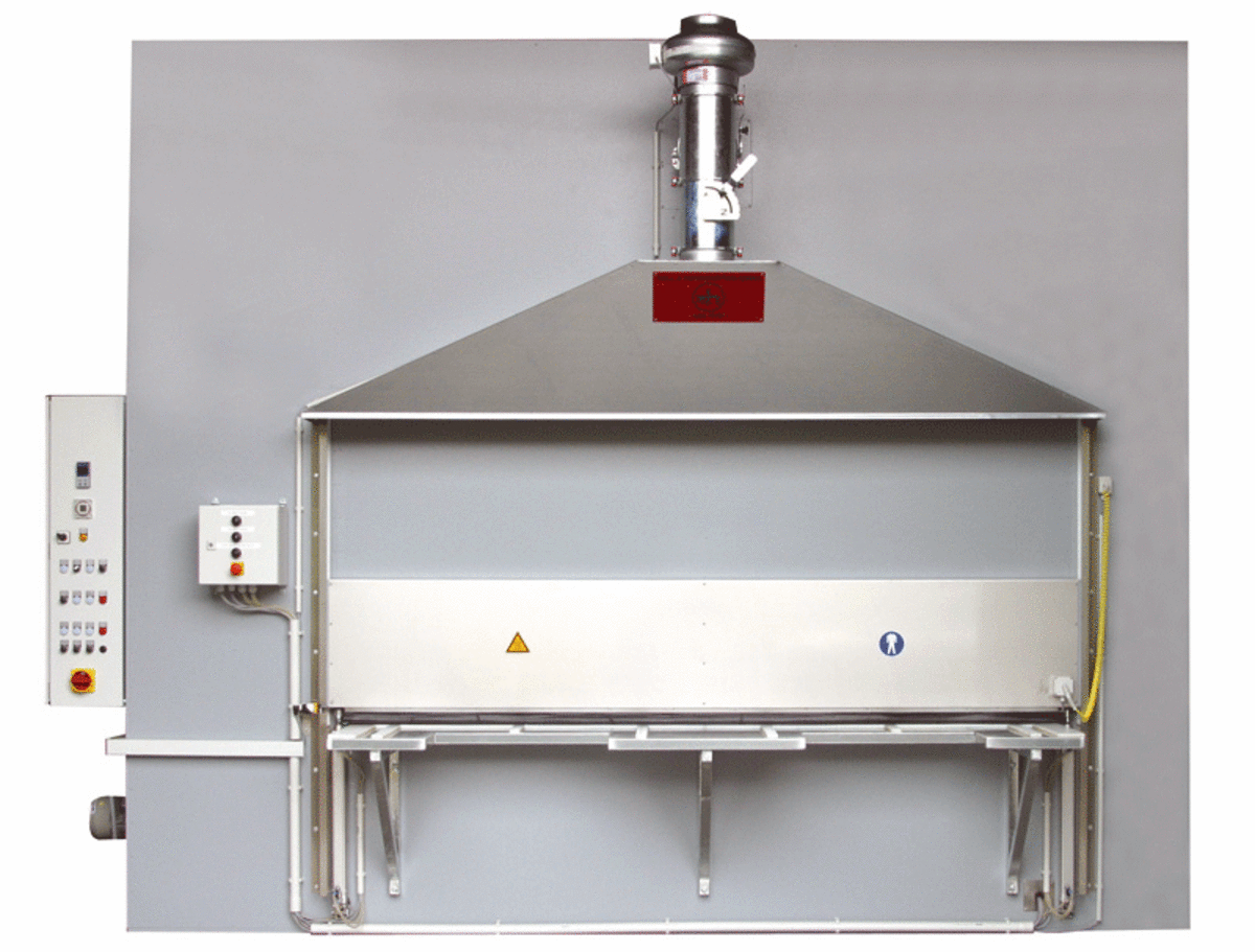 Durch angebaute Arbeitstische mit Absaugeinrichtungen kann der Trockenofen mit Umlaufregal zu einer vollwertigen Arbeitsstation ausgebaut werden, in der die Werkzeuge oder Bauteilträger immer am Ofen verbleiben und nicht auskühlen.
